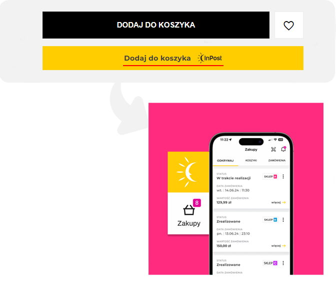 Dodaj produkty do koszyka. Wybierz metodę dostawy InPost Pay. Zeskanuj kod QR lub kliknij link, który otworzy aplikację InPost. Potwierdź zakup w aplikacji - i gotowe! Twoje dane do dostawy i płatność są automatycznie pobierane z Twojego konta InPost, co pozwala zrealizować zamówienie w kilka sekund.